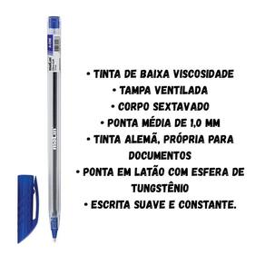 Caneta Esferográfica Molin - 10 Unidades Preta, 1.0 mm A Caneta Esferográfica Molin é a escolha ideal para quem busca qualidade, conforto e eficiência na escrita. Com corpo sextavado que garante melhor pegada e tampa ventilada, ela combina segurança e praticidade para o dia a dia. Características do produto: Escrita suave e constante graças à tinta de baixa viscosidade. Ponta média de 1,0 mm, perfeita para uso escolar, universitário ou . Tinta alemã, desenvolvida especialmente para documentos, garantindo durabilidade e nitidez. Ponta em latão com de tungstênio, que proporciona maior resistência e desempenho uniforme. Kit com 10 canetas na cor Azul, ideal para ter sempre uma à mão em casa, no escritório ou nos estudos. Conteúdo da embalagem: 10 unidades de caneta esferográfica Molin Azul 1.0 mm . Marca: Não Informado