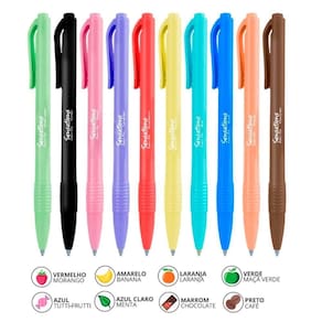 Contém: 01 un - caneta esferográfica newpen sensations perfumada 7mm. A caneta será enviada Tem escrita macia e tinta perfumada. A cor do corpo da caneta é a cor da tinta. Ideal para quem busca praticidade e diversão em suas atividades diárias. Garanta já a sua Composição - comprimento: 14,5cm. Cores/cheiros: Marrom/chocolate Azul claro/menta Vermelho/morango Amarelo/banana Laranja/laranja Rosa/rosas