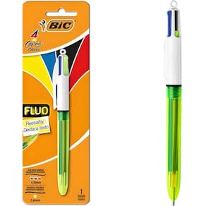 A caneta 4 cores fluo é uma versão moderna da clássica bic 4 cores. Com um simples clique, você tem acesso a quatro cores diferentes: preto, azul, vermelho e amarelo fluorescente para destacar texto. Sua ponta amarela fluorescente de 1,6 mm é mais larga que as outras cores para facilitar a identificação das ideias principais. além disso, você pode verificar o nível de tinta graças ao seu barril transparente em neon. Escreva quando e onde quiser com a confortável caneta bic 4 cores fluo.