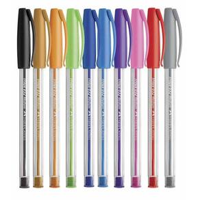 Kit contendo 10 canetas nas cores: Preta, azul, azul claro, verde claro, violeta, rosa, vermelha, laranja, dourada e prata.