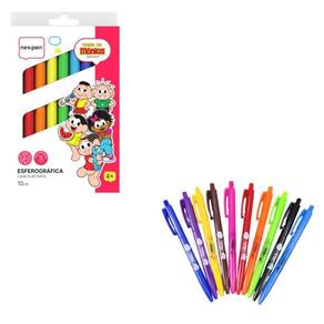 - 1 Estojo Caneta Esferográfica Turma da Mônica 0.7mm Tinta Perfumada com 10 Unidades NEWPEN