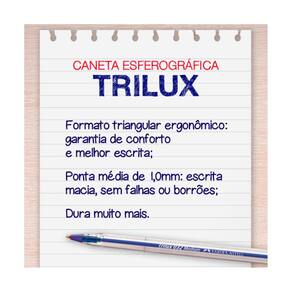 As canetas esferográficas Trilux Colors tem o formato triangular ergonômico, que garante conforto e melhor escrita.
