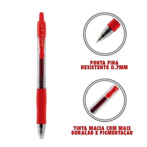Destaques: - Tinta gel premium: intensa, fluida e confiável - Ponta fina (0.7 mm) de aço inoxidável - Mecanismo retrátil com rotação interna da carga - Grip ergonômico emborrachado - Importada do Japão