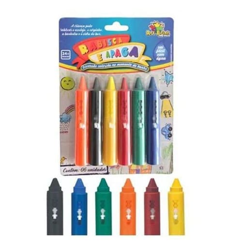 Modo de Usar: Pinte seu corpo, os azulejos e a banheira com os gizes Rabisca e apaga. Lave com água para remover o giz.
