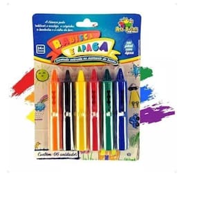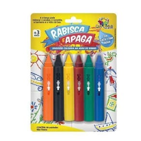 CARACTERÍSTICAS DO PRODUTO: - Conteúdo: 6 Unidades de Giz Coloridos - Medidas dos gizes: AxL - 9 x 1,5cm - Material: Plástico e cera
