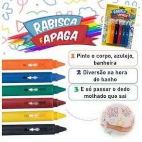A criançada pode rabiscar o azulejo, o corpinho, a banheira e o vidro do box Os pequenos vão brincar e se expressar livremente, desenvolvendo coordenação motora e a criatividade. Aprendizado e diversão andando juntos O banho do seu filho mais divertido e colorido