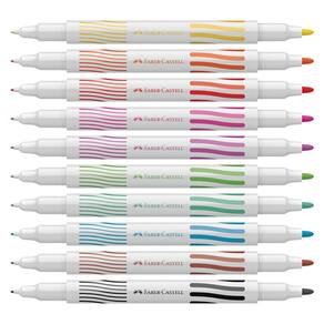 As canetinhas Contorna e Pinta da Faber-Castell possuem cores vivas! Suas duas pontas de espessuras de traço diferentes (fino e grosso) podem ser utilizadas para os mais variados tipos de desenhos e pinturas. Sua tampa é anti-asfixiante e a tinta é lavável na maioria dos tecidos.