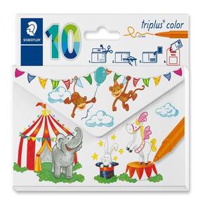 Caneta Hidrocor Staedtler Triplus Color 10 Cores 323 CL10 Caneta de ponta de fibra em formato triangular ergonômico para escrita e pintura fácil e confortável, ponta estável e resistente a pressão.