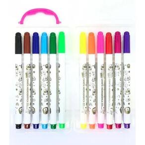 Caneta Hidrográfica 12 Cores Lavável Colorida Hidrográfica de ponta resistente e ótimo rendimento. Possui escrita macia com traços bem coloridos. Ideal para a escola, o trabalho e para o lazer, pois sua ponta permite colorir detalhes, fazer rascunhos e sublinhar com precisão. - Produto atóxico e tampa antiasfixiante - Cores vivas - Lavável - Ponta: 2.0mm - Contém: 12 Cores - Marca: KAZ