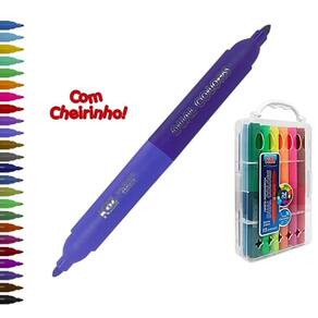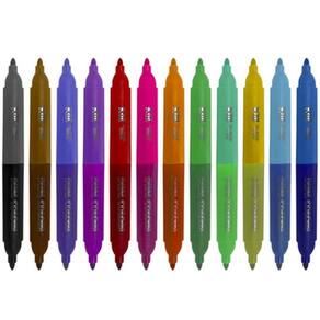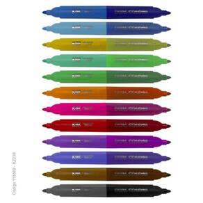 CANETA HIDROGRÁFICA DUAL COLOR 24 CORES COM CHEIRINHO - KZ239 - KAZ