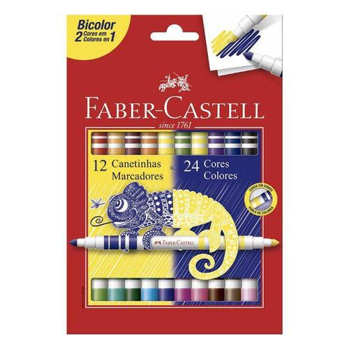 Caneta Hidrográfica Faber-Castell Bicolor 12 Un 24 Cores 12 canetinhas e 24 cores 1 caneta, 2 cores criatividade em dobro Formulação de alta qualidade: Cores mais vivas e grande durabilidade Ponta que permite 2 tipos de traço Marca: Não Informado Ean: 7891360657668