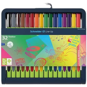 Caneta Hidrográfica Schneider Line-Up Com 32 Cores Line-up é a primeira caneta fineliner com corpo fabricado usando 88% de plástico biológico. Com 32 opções de cores e ponta fina, esse estojo é companheiro perfeito para combinar desenho e escrita. Estojo com 32 canetas. Ean: 4004675109149