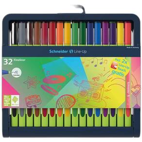 Caneta Hidrográfica Schneider Line-Up Com 32 Cores Line-up é a primeira caneta fineliner com corpo fabricado usando 88% de plástico biológico. Com 32 opções de cores e ponta fina, esse estojo é companheiro perfeito para combinar desenho e escrita. Estojo com 32 canetas. Marca: Não Informado