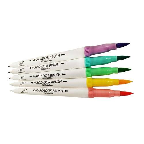 As brush pens são canetas com a ponta em forma de pincel e as dual brush são as que tem de uma lado a ponta pincel e do outro a ponta igual canetinha. No geral, são pontas mais maleáveis que permitem fazer um traço fino e um traço grosso enquanto escreve, ideal para fazer LETTERING e CALIGRAFIA.