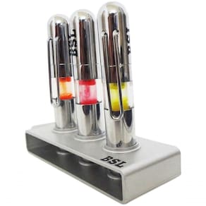 CADA KIT CONTÉM 3 CANETAS MARCA TEXTO E 1 SUPORTE