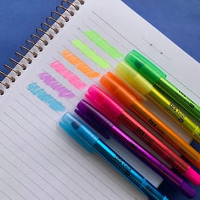 O marca texto Gel Twist possui ponta gel retrátil e não passa para o outro lado do papel! Não borra impressões em jato de tinta. Mina de cera translucida.