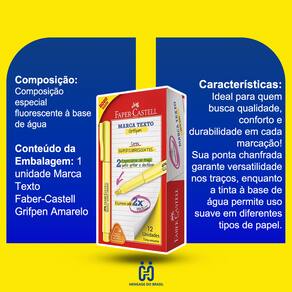 O Marca Texto Faber-Castell é indicado para destacar informações em textos impressos ou escritos à mão, auxiliando na organização e na leitura de conteúdos. Possui tinta fluorescente na cor amarela, que proporciona boa visualização sem comprometer a legibilidade do texto.