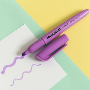 Caneta Marca Texto Lumis Pastel Maxprint Un Lilas Pastel A Caneta Marca Texto Maxprint Lumis Pastel Lilás oferece um toque de delicadeza e sofisticação na hora de destacar informações importantes. Com tinta em tom lilás pastel, proporciona marcações suaves, ideais para leituras prolongadas, organização de anotações e uso em planners ou bullet journals.