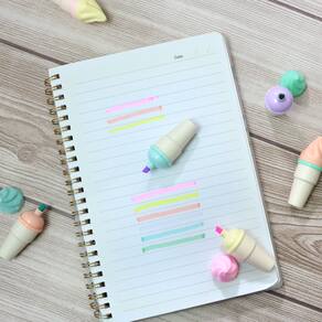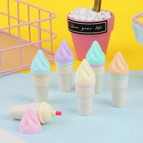 Marca texto com formato de sorvete na casquinha irá deixar os estudos mais leves, doces e refrescantes. São 6 cores: Amarelo, Rosa, Azul, Lilás, Verde e Laranja. Cores suaves com pigmentação ideal para marcar o que precisar. Acompanha estojo transparente.