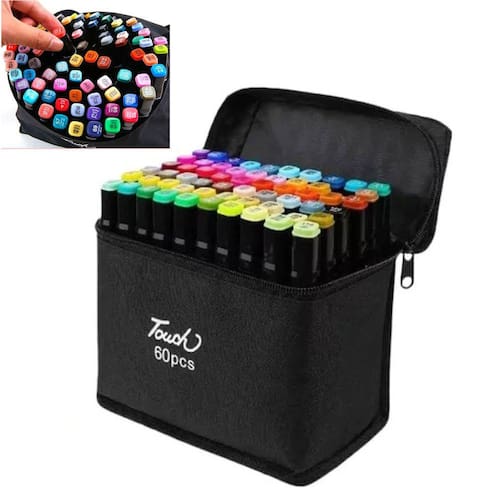 As canetas são de ponta dupla, duas pontas padrão, grossa e fina. Os marcadores são a base de álcool e não contém cheiro, ideal para crianças.