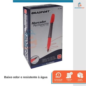 Caneta Marcador Permanente Ponta Fina Brasfort 12 Un Vermelh
