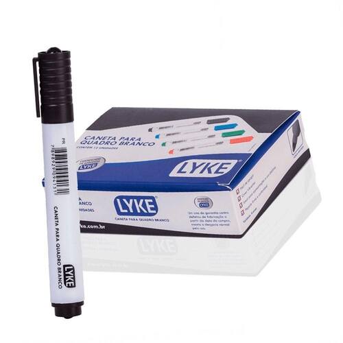 Caneta Marcador Para Quadro Branco 5Mm Preto Cx Com 12Unds Lyke Caneta marcador para quadro brando 5.0mm preto cx com 12 unds lyke marcador para quadro branco lyke, na cor preta, possui sua ponta redonda que proporciona melhores traços e visibilidade quando utilizado em grandes espaços. É ideal para uso didático e apresentações.. Embalagem: caixa com 12 unidades. Cor: preto. Ponta: 5mm redonda. Atenção: imagem meramente ilustrativa. Pode ocorrer mudanças no tom da cor para o produto real ou mudanças na embalagem sem aviso prévio por parte do fornecedor/fabricante. - atenção não recomendável para crianças menores de 3 três anos por conter parte s pequena s que pode m ser engolida s ou aspirada s e ponta s aguda s funcional is .