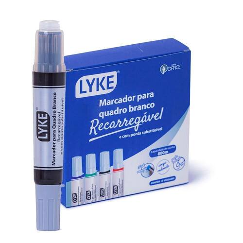 Marcador para quadro branco recarregável, na cor preta, possui sua ponta redonda que proporciona melhores traços e visibilidade quando utilizado em grandes espaços. Para fazer a recarga da tinta basta abrir a tampa do marcador na parte inferior e fazer a recarga. É ideal para uso didático e apresentações. Embalagem: caixa com 12 unidades. Cor: preto. Ponta: 5mm redonda. Atenção: imagem meramente ilustrativa. Pode ocorrer mudanças no tom da cor para o produto real ou mudanças na embalagem sem aviso prévio por parte do fornecedor/fabricante. - atenção não recomendável para crianças menores de 3 três anos por conter parte s pequena s que pode m ser engolida s ou aspirada s e ponta s aguda s funcional is .