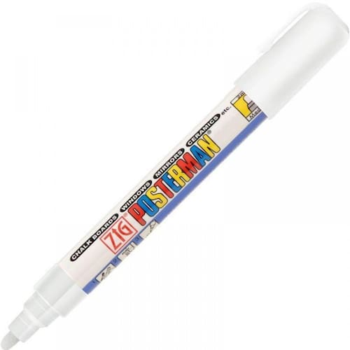 Marcador ZIG Posterman Fabricado do Japão é uma ferramenta versátil que foi idealizada para ser aplicada em diversos tipos de superfície tornando-a a companheira inseparável de todo artista. Sua formulação base água inodora e livre de xileno, torna possível a sua utilização em espaços fechados como estúdios e ateliês.