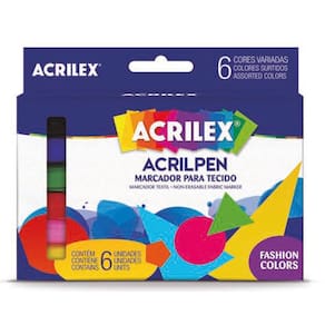 Cores: Preto, Vermelho, Azul, Verde, Amarelo, Rosa Excelente fixação. Super resistência à lavagens. Lavar o tecido antes da pintura, para retirar os resíduos de goma. Após a pintura, aguarde 72 horas para lavagem. Para tecidos de algodão. Não utilizar em tecidos sintéticos ou engomados. Tecidos, Papel, Papelão, Madeira, Cerâmica, Gesso