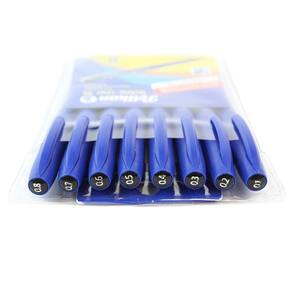 - Ponta de metal comprida - Ideal para desenho técnico - Tinta pigmentada livre de ácido e à prova de água - O kit contém as seguintes numerações: 0.1, 0.2, 0.3, 0.4, 0.5, 0.6, 0.7 e 0.8