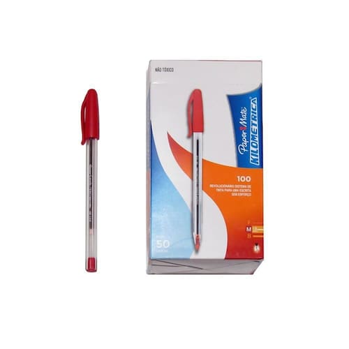 Caneta Paper Mate Kilometrica esferográfica Vermelha 50un Nosso objetivo é oferecer um sistema revolucionário de canetas que entrega escrita mais macia e sem muito esforço. Queremos sempre te oferecer uma caneta que comece a soltar a tinta assim que a ponta faz contato com o papel, sem arranhar, com o mínimo de pressão, produzindo sempre linhas limpas e nítidas. Mas, acima de tudo, queremos trazer de volta o prazer para a escrita. Esperamos que você sinta alegria quando escreve com uma caneta Paper Matte Kilometrica. - Caneta 1.0mm - Corpo transparente, permite ver o nível da tinta - Corpo triangular, proporciona maior conforto ao escrever - Tinta HI-TECH: proporciona uma escrita extra suave e intensa desde o início. A caneta esferográfica Paper Mate Kilometrica de cor vermelha conta com um revolucionário sistema de tinta para uma escrita sem esforço, escrita suave e intensa desde o começo.