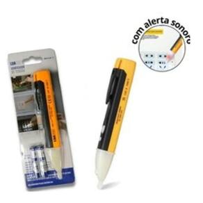 Caneta para detectar tensão m Detector tensao caneta energia led corrente medidor sonoro eletricidade luminoso ferramentas O detector de tensão é utilizado para verificação de presença de tensão ac. O produto sinaliza a presença de tensão com aviso sonoro e luminoso, pois possui led de iluminação com alto brilho. Pode ser utilizado como detector de presença de fases, fios e cabos energizados. O produto funciona com 2 pilhas 1,5v aaa alcalinas pilhas inclusas . Atenção: não utilizar o produto em tensão acima de 1.000v ac. Atenção: produto funciona com 2 pilhas 1,5v aaa pilhas inclusas . Atenção: retire as pilhas quando o produto ficar sem uso durante um longo período. Características do produto: