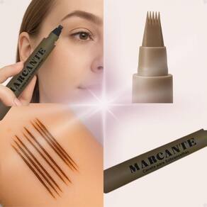Com as sobrancelhas limpas e secas, aplique a caneta com traços leves e curtos, seguindo a direção natural do crescimento dos pelos. Preencha as áreas com falhas e defina o contorno desejado. Para um efeito mais intenso, aplique camadas adicionais. Utilize uma escovinha para sobrancelhas para esfumar e uniformizar a cor, garantindo um acabamento natural e impecável.