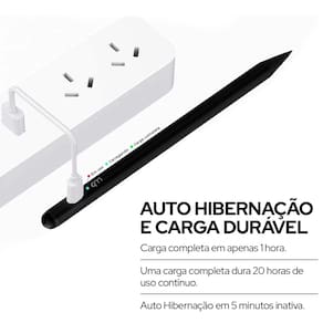 Palm Rejection, Bateria Durável e Carregamento Rápido, Ponta de 1.0 mm e Ponta Extra, Liga e Desliga ao Toque, Auto Hibernação