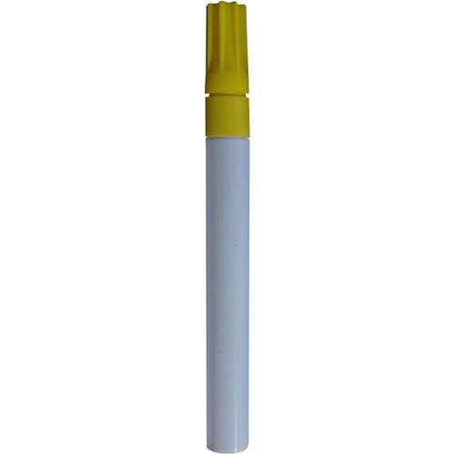 Caneta Permanente de Alta Fixação com Ponta Chanfrada 5mm Cor: Amarelo A caneta possui um corpo metálico contendo tinta permanente a base de óleo sendo super-resistente à água e altas temperaturas, o que faz com que não seja necessário a utilização de verniz após o uso pois já possui grande fixação.