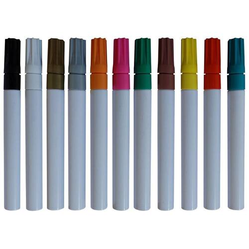 Caneta Permanente de Alta Fixação com Ponta Chanfrada 5mm Cor: Colorido A caneta possui um corpo metálico contendo tinta permanente a base de óleo sendo super-resistente à água e altas temperaturas, o que faz com que não seja necessário a utilização de verniz após o uso pois já possui grande fixação.