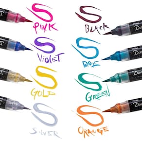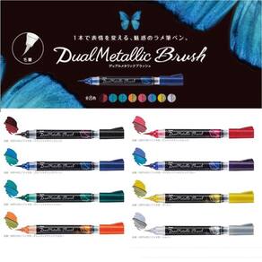 Este pincel possui um sistema de bombeamento para recarga de tinta. Além disso, possui duas cores em uma única caneta! A tinta se adapta para cada tipo de papel aplicado, preto ou branco. A ponta do pincel é nylon e super flexível. Ótimo para cartões, convites, lettering, desenhos e outros designs. Dá um super destaque para as ilustrações e textos! Disponíveis em 8 cores maravilhosas.