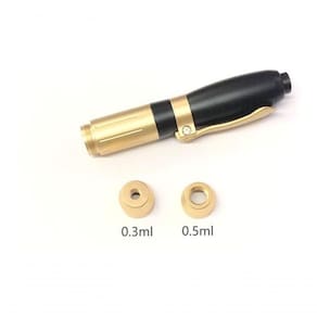 Mola e pistão, que permitem, sob pressão, injetar de maneira rápida e uniforme sob a pele através de um orifício com diâmetro de 0,1 mm, que é duas vezes menor que a espessura da agulha para injeção!