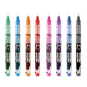 Sua ponta é fina, 0.5mm, e está disponível em 8 cores: preto, azul, azul claro, verde, laranja, vermelha, rosa e roxo!
