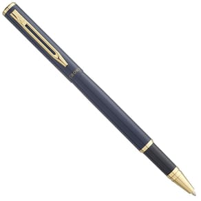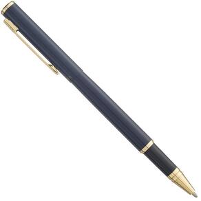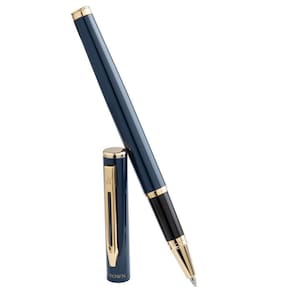 Azul com detalhes dourados tem sua escrita com conforto e maciez. Sistema de abertura por Tampa e com carga roller crown rollerball a base de água Cor da tinta: preta A caneta mais estilosa e confortável que você pode ter INMETRO: ISENTO