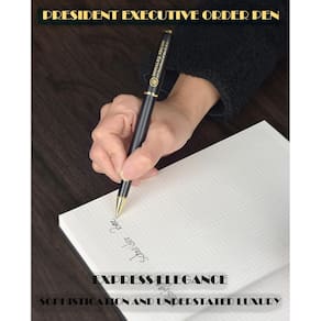 Canetas rollerball Experiência de escrita suave – O design elegante torna a caneta de metal fácil de segurar e deslizar no papel. O peso e o equilíbrio são perfeitamente alcançados, proporcionando uma experiência de escrita agradável sempre. Suave e sedoso para escrita especial de alta precisão para marcar seus momentos mais importantes. As canetas esferográficas duram quilômetros de escrita com um traço limpo e uniforme até o fim. Canetas esferográficas fofas: caneta esferográfica de metal de aço inoxidável de estilo comercial atraente, peso adequado pode ser segurado confortavelmente na mão para escrever. A caneta é sólida e mais durável, com uma longa vida útil. Embora simples e minimalista, o exterior preto fosco de cada caneta parece elegante e sofisticado. Atende a todas as suas necessidades para assinar cheques, tomar notas, preencher formulários, etc. Melhor caneta para uso em um ambiente profissional, de escritório ou de negócios. Compre com total confiança – incrível atendimento ao cliente e garantia de devolução do dinheiro. Nossos clientes estão no centro de tudo o que fazemos. Se você não estiver satisfeito, corrigiremos ou reembolsaremos você – o que você preferir. Conhecemos a qualidade dos nossos produtos e queremos que você tenha o melhor possível. Aparência ultra luxuosa - aço inoxidável preto, acabamentos dourados... A arte do alquimista une esses metais para criar um acessório contemporâneo e sofisticado. Sensação substancial e premium ao escrever. A caneta mantém o brilho metálico sempre e não há sinais de desgaste. Aproveite a sensação de uma verdadeira caneta de luxo em suas mãos. - Caneta extravagante da Ordem Executiva do Presidente Trump – Expresse elegância, sofisticação e luxo discreto – Na tampa da caneta, você tem o selo presidencial junto com as palavras "DONALD J. TRUMP" e "47º Presidente dos EUA". - Melhor presente para professores: esta caneta executiva única é uma réplica da mesma caneta que o presidente Trump usou ao assinar suas ordens executivas! A caneta tem uma cor preta profunda e toques de ouro deslumbrante. Presentes engraçados – cada caneta encomendada inclui uma caixa de exibição premium colecionável! - Aproveite a sensação de uma verdadeira caneta de luxo em suas mãos – deslumbrante caneta esferográfica de luxo da RAPGET. Latão com laca preta com acabamento em ouro de 24 quilates. Uma caneta de qualidade que permite escrever por horas com facilidade - Meias masculinas – combina a sensação de tinta de uma caneta-tinteiro com a conveniência de uma caneta esferográfica e dá uma ação de escrita superior às canetas de tinta de gel. Perfeitamente ponderada e equilibrada para o seu conforto de escrita – esta é uma caneta de luxo projetada para aqueles que amam escrever todos os dias - Um presente perfeito – Lindamente embalado e ideal para o Dia dos Pais, Dia das Mães, formatura, Natal ou para um professor favorito. Ou simplesmente como um presente para se presentear! Se você tiver alguma dúvida, com nosso atendimento ao cliente 24 horas por dia, 7 dias por semana e garantia de devolução do dinheiro.