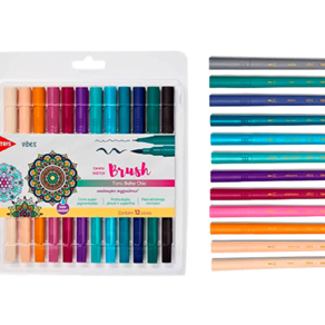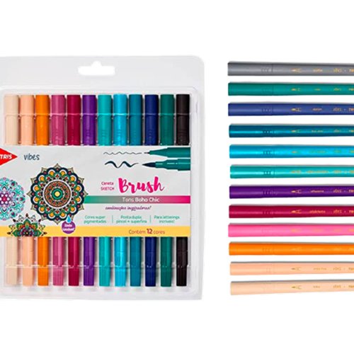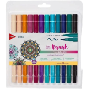 Caneta Sketch Vibes Ponta Brush / Pincel + Ponta Fina 12 cores Tons Boho Chic Tris