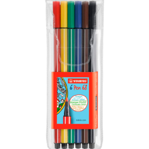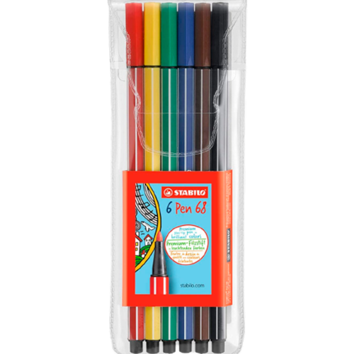 Quer começar sua coleção de Pen 68? Aqui tem um estojo com as cores mais procuradas da caneta grossinha da STABILO! Ótima para títulos, preenchimentos e grifos, essa combinação de cores vai ser perfeita para seus cadernos.