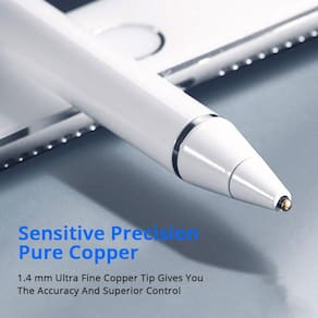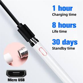 Caneta inteligente universal com tela capacitiva Ponta sensível e precisa de 1,45 mm Oferece precisão e controle superiores. Interruptor de um botão, sem necessidade de conectar Bluetooth, APP, etc. Abra o botão para usar caneta de toque de alta precisão, caneta precisa, sensível e suave. Novos horizontes Desenho de modelo sofisticado, pintura complicada, vários, símbolo de nota Compatível com todos os telefones e tablets iOS/Android/ows (adequada para tela de capacitores). Tampa de caneta de atração magnética, forte adsorção não é fácil para soltar, não precisa apertar a tampa, carregar é mais conveniente. Carregue por 1 hora Use por 10 horas, bateria de grande capacidade de 140 MAH, 45% de aumento na resistência. 30 minutos sem uso, a caneta entra em um estado de hibernação automático, caneta inteligente de peça única PowerSavingBody, alça confortável, anti-manchas e anti-impressão digital Veja menos