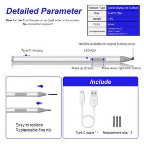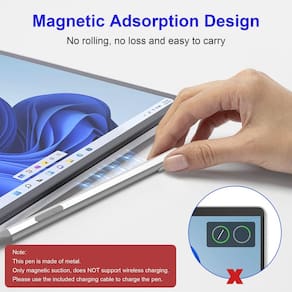 Caneta Stylus para Windows. Escreva e desenhe naturalmente. Crie sem limites. Destaques: Rejeição da palma Sensibilidade de pressão de nível 4096. Suporta 60 horas de escrita. Ponta de caneta substituível. Adsorção magnética. Botão direito do mouse e borracha Indicador de carregamento LED. Design simplificado. Botão direito do mouse e borracha Clique no botão para cima para executar a função de seleção de cores (também equivalente ao botão direito do mouse); clique no botão para baixo para ter a função de borracha, que é muito adequada para criadores que desenham. Escreva e desenhe naturalmente Esboce e sombreie com precisão com 4.096 pontos de pressão que respondem ao toque mais leve. A tinta flui da ponta da Surface Pen para a tela praticamente sem atraso. Chip inteligente integrado e dispositivo de proteção, o carregamento é seguro e estável Proteção contra curto-circuito Proteção contra excesso de energia. Proteção contra temperatura Proteção contra sobrecorrente. Proteção contra sobretensão. Proteção contra sobrecarga - Um acessório essencial para o proprietário da superfície: Caneta Surface Basta pressionar qualquer botão para começar a escrever. É compatível com Surface Pro 11/10/9/8/X/7/7plus/6/5/4/3, Surface Laptop 1/2/3/4/5, Surface Book 1/2/3, Surface GO/GO 2/GO 3, Surface Studio/Studio 2. Também é compatível com as séries ASUS/HP/Sony/Dell. Pacote: 1 caneta Microsoft com ponta, 1 cabo USB-C, 3 pontas de substituição, 1 manual do usuário (sem garantia de versão em português). - Carregamento rápido tipo C e longa vida útil da bateria: aproveitando a carga Tipo-C líder da Suejezt e maior vida útil da bateria, com apenas 30 minutos de carregamento, você obtém 60 horas de uso. Gire automaticamente no "modo de suspensão" se estiver ocioso por 10 minutos, economiza muito o consumo de energia da bateria e estende o tempo de uso. Além disso, o corpo da caneta está equipado com um indicador de carregamento LED para manter você informado sobre o status da bateria. Perfeita para estudantes, profissionais de negócios e criadores que fazem anotações e desenham com frequência. - Funções de borracha e clique com o botão direito e 3 pontas de caneta substituíveis: a caneta Surface vem com funções de borracha e clique com o botão direito do mouse, a tecla inferior é o botão direito do mouse e a tecla superior é a borracha, que ajuda você a melhorar a eficiência do seu trabalho. Basta pressionar qualquer botão para ativar a caneta de superfície e começar a escrever, sem a necessidade de Bluetooth ou drivers. Ponta fácil de substituir: 3 pontas extras para facilitar a substituição a qualquer momento. - Rejeição da palma e sensibilidade ao toque 4096: caneta Microsoft Surface com rejeição da palma da mão, permitindo que você descanse confortavelmente sua mão na tela enquanto cria, sem se preocupar com toques acidentais ou erros operacionais causados por toques não intencionais na palma da mão ou pulso. Controle fino com 4096 pontos de pressão. A tinta flui em tempo real sem atraso ou latência. Proporciona uma experiência mais suave. - Design magnético e sensação premium: o design magnético permite que a caneta de superfície seja fixada com segurança ao tablet, tornando-o mais conveniente para armazenar e localizar durante o uso. O design geral simplificado do corpo de liga de alumínio é ergonomicamente projetado e mais confortável de segurar. A caneta de superfície tem um recurso de inclinação e espessura que permite que a linha fique mais espessa à medida que a caneta é inclinada em um ângulo maior. Isso é especialmente útil para criar contornos e sombreamentos precisos.
