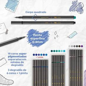 A caneta superfina vibes possui ponta metálica de feltro resistente, traço 0.4mm e corpo quadrado super estiloso