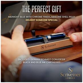 APROVEITE A SENSAÇÃO DE UMA VERDADEIRA CANETA DE LUXO EM SUA MÃO Impressionante caneta tinteiro de luxo da Scriveiner. Latão com laca azul e apontamentos cromados. Qualidade premium e luxo discreto de uma marca britânica boutique. TRANSCREVA SEUS PENSAMENTOS SEM ESFORÇO Sua caneta vem com uma ponta Schmidt média, um conversor Schmidt e dois cartuchos sobressalentes um preto e um azul. O sistema de tinta Schmidt da Alemanha permite que sua caneta deslize suavemente em qualquer tipo de papel. Perfeitamente ponderada e equilibrada para o seu conforto de escrita esta é uma caneta de luxo projetada para quem gosta de escrever todos os dias. IMPRESSIONE SEUS COLEGAS E SEUS entes queridos A caneta vem em uma linda caixa de apresentação, tornando a o presente perfeito. Seja como uma caneta casual ou executiva, para trabalho, escritório ou uso pessoal, sua caneta tinteiro Scriveiner será admirada por todos ao seu redor Marca: Não Informado