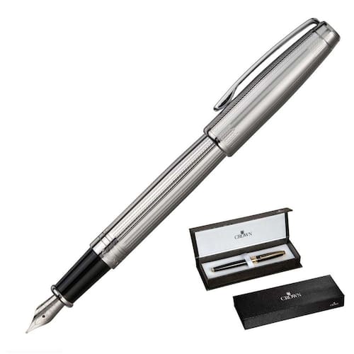 Sistema de abertura: Tampa Material do corpo: Metal Material da tampa: Metal Material do clipe: Metal Sistema de pintura: Silk Screen Tipo de carga: Cartucho Tipo de ponta: Tinteira Tipo de tinta: Tradicional Escrita: Pena Cor do corpo: Prata Cor da tampa: Prata Cor do clipe: Cromado Cor dos detalhes: Prata Cor da tinta: Azul Acabamento: Polido