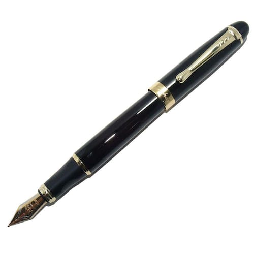 Caneta Tinteiro Jinhao X450 Preto Brilhante GtA Jinhao está sempre inovando suas linhas de canetas e, consequentemente, surpreendendo os consumidores com sua expertise. Neste modelo de caneta tinteiro, X450, você poderá encontrar um item de maior peso e de excelente encaixe à mão, o que lhe permitirá uma escrita mais firme e intensa.ESPECIFICAÇÕES TÉCNICASMarca: JinhaoModelo: X450Composição: MetalPena/material: Média, em metal Refil: Cartucho padrão internacional ou Tinta para caneta tinteiro/ConversorItens inclusos: 01 conversor padrão internacional + 01 cartuchoGarantia: 90 dias