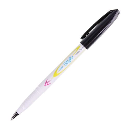 - Marca: Pentel - Modelo: Stylo - Cor: Preta - Ponta tinteiro - Possui tampa removível com clip - Tinta à base de água - Composição: resinas termoplásticas e tinta